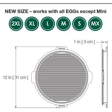 The Big Green Egg 10.5 in / 27 cm Dual-Sided Cast Iron Plancha Griddle is perfect for adding sear marks and a delicious flavor-packed crust to foods. This new size will fit perfectly in the MiniMax EGG on up! Big Green Egg cast iron products are built to deliver a lifetime of cooking enjoyment. You can use in your EGG for everything from blackened chicken and seafood, to grilled vegetables and steakhouse-style seared steaks.