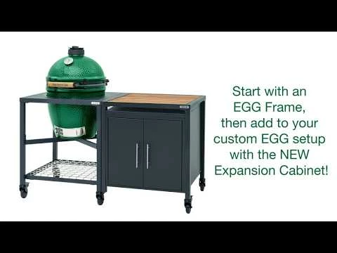 Build your outdoor kitchen one-step at a time with the Big Green Egg Modular Nest System. Start with an EGG Frame, then add to your custom EGG setup with Expansion Frames or the NEW watertight Expansion Cabinet! Finish off the look with an insert from your choice of beautiful and functional options … you won t believe all of the possibilities!