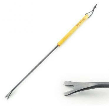 The extended handle allows you to clean the grid even when it is hot. The fork-tongued angled design makes cleaning the top and sides of the cooking grid a breeze. Works with cast iron and stainless grids. Designed and manufactured in the USA.