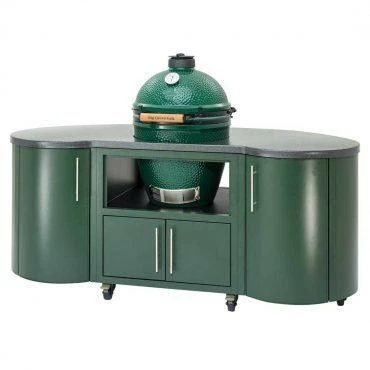 Designed and engineered to work perfectly with your Big Green Egg for years of enjoyment! The 76 inch Custom Cooking Island provides an impressive working surface. It features a heavy duty sliding shelf and high-quality aluminum and steel construction.