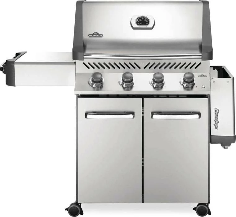 Grilling up a delicious dinner for a crowd is easy with the Napoleon Prestige Series 500 Natural Gas Grill, all in glorious stainless steel. Grill up to thirty burgers at once on the large grilling area and generous warming rack. You’ll know it’s a Napoleon with the iconic WAVE cooking grids for those distinctive sear marks. Not just durable on the outside; under the lid, quality stainless steel is used for the cooking grids, tube burners and sear plates. The LIFT EASE roll top lid provides superior heat retention, allowing you to sear, bake, roast, smoke, and even turn your grill into a charcoal BBQ with the optional Charcoal Tray. Never leave your barbecue on again with the SafetyGlow feature where the control knobs glow red when the burner is on. This compact grill features folding side shelves and interior cabinet storage inside the minimalist pedestal base. Complete your outdoor living space with the gas grill that can do it all.