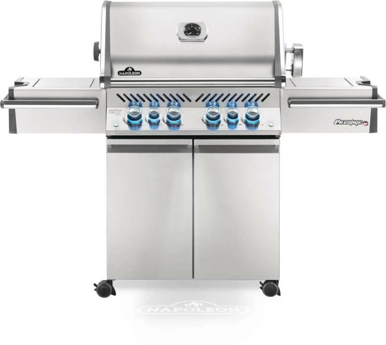 This slick grill is as impressive as its title sounds. The Prestige PRO 500 Propane Gas Grill with Infrared Rear and Side Burners is a professional style grill, built with high-quality, high-performance features making grilling easy and impressive. A shining stainless steel body provides durability against the elements while chrome details add a touch of luxury. Inside; the same high-quality stainless steel is used for the cooking grids, tube burners and sear plates. An industry first proximity light detects your presence and you’ll know it’s a Napoleon with those iconic WAVE cooking grids for those distinctive grill marks. Grill steak like the PROs using the high heat infrared side burner to create the perfect sear. Illuminated cooking area and interior storage, soft close doors and spacious side shelves are just a few of the features. The LED Spectrum NIGHT LIGHT Control Knobs have near limitless color options making night-time entertaining a breeze, and they also glow red when the gas is left on as a safety feature.
