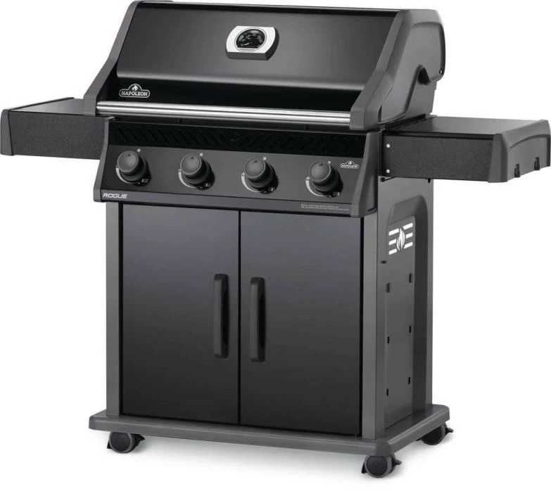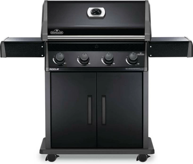 Napoleons Rogue 525 Propane Gas Grill in Black is a large, premium quality grill with an affordable price. Four burners light instantly with a battery-free ignition. This grill features precise temperature control and high heat searing over cast-iron cooking grids. The stylish black exterior is highly durable and easy to clean.