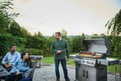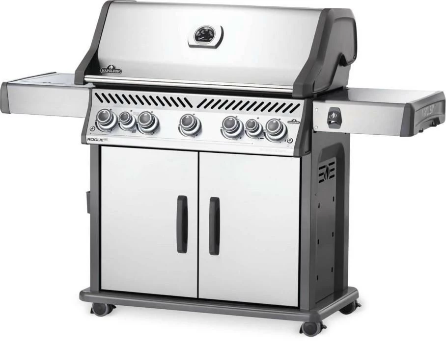 The Napoleon Rogue SE 625 Stainless Steel Propane Gas Grill with Infrared Side Burner and Rear Burner is a durable stainless steel grill. Featuring five main burners, a rear rotisserie burner, and a high top lid, this grill has everything you need to create gourmet meals. Sear restaurant-style steaks on the integrated sear station, while generous side shelves provide plenty of prep space.
