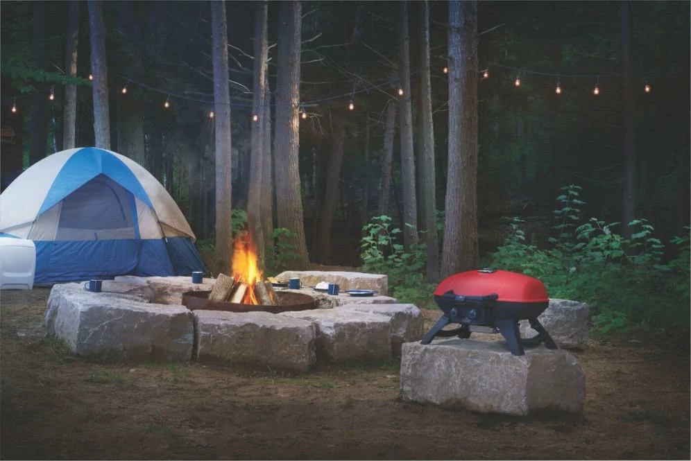 The stylish red Napoleon TravelQ 285 Portable Propane Gas Grill has set a new standard in portable grilling excellence. Don’t let the small size fool you; this grill boasts 285 square inches of total grilling area. That means you can grill up to 17 large hamburgers at once or a couple of small chickens or roasts thanks to the high-top cast aluminum lid. Two, individually controlled burners provide precise temperature control. You’ll know it’s a Napoleon with the iconic WAVE cooking grids for those distinctive sear marks. The porcelain coated enamel grids will season to a nonstick surface just like a cast iron frying pan. Replace one set of grids with the griddle and caramelize onions or cook breakfast. This grill features a cast aluminum body to keep it light and portable and the legs fold in for compact storage. The removable grease tray slides out for easy cleaning. The TravelQ is a perfect way to take gourmet grilling on the go.