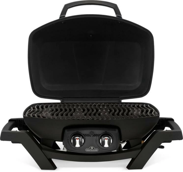 Napoleon’s TravelQ PRO285 Portable Propane Gas Grill can grill up to 20 hamburgers at once on the 285 square inches of cooking area. The stylish all-black finish with chrome details will match any outdoor decor. The cast aluminum, high-topped lid design lets you take portable grilling to the gourmet level. Roast whole chickens or turkeys, pork and even prime rib; this little grill can do it. Using the dual stainless steel burners, you have precise control over the temperature, just like on Napoleon’s full sized grills. High heat searing is a snap and you’ll know it’s a Napoleon with the iconic WAVE cooking grids for those distinctive sear marks. Like your favorite cast iron skillet, the porcelain coated cast iron cooking grids heat evenly and provide a non-stick surface for your food, seasoning like a cast iron skillet. This grill is perfect for any adventure. You can’t beat this professional grill in a portable package.
