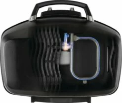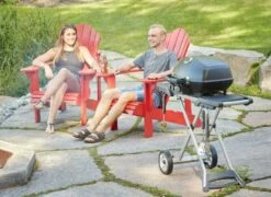 Napoleon’s TravelQ PRO285 Portable Propane Gas Grill with scissor cart can grill up to 20 hamburgers at once on the 285 square inches of cooking area. The stylish all-black finish with chrome details will match any outdoor decor. The cast aluminum, high-topped lid design lets you take portable grilling to the gourmet level. Roast whole chickens or turkeys, pork and even prime rib; this little grill can do it. Using the dual stainless steel burners, you have precise control over the temperature, just like on Napoleon’s full sized grills. High heat searing is a snap and you’ll know it’s a Napoleon with the iconic WAVE cooking grids for those distinctive sear marks. This grill has everything you need for perfect portable grilling anywhere, the nimble cart features all-terrain wheels, easy folding, setup, compact storage, and propane tank straps. This grill is perfect for any adventure. You can’t beat this professional grill in a portable package.