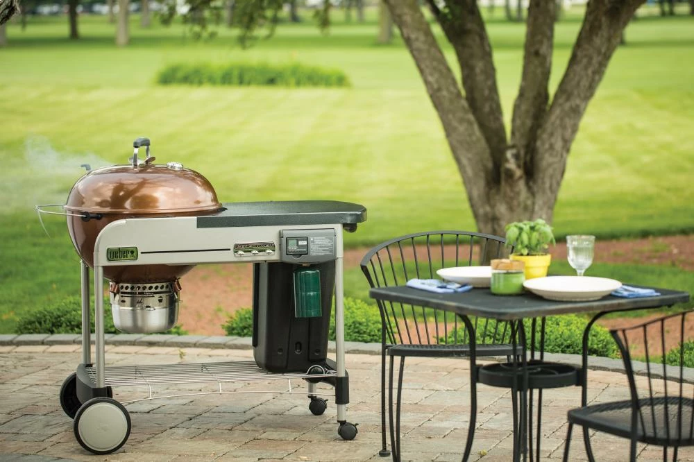 With a push of a button, the coals are lit, and the essence of BBQ fills the air. The Performer® Deluxe charcoal grill performs from beginning to end. Light coals with the Touch-N-Go gas ignition, prep food on the large work table, and know that cleanup will be easy with the One-Touchâ„¢ cleaning system. All that’s left is to sit back and enjoy the performance.