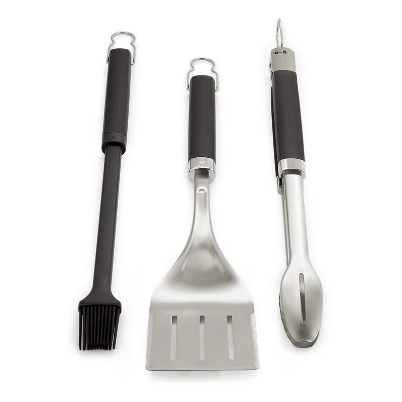 Flip burgers, turn vegetables or glaze your ribs with extra flavor. The 3-sided beveled edge spatula, hands-free locking tongs and full-size silicone basting brush in the Precision 3-Piece Grill Set are your everyday grilling essentials in one kit. All tools feature a soft-touch handle for a comfortable and secure grip.