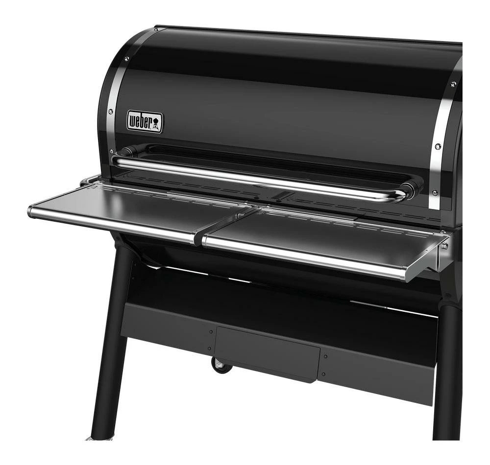 The stainless steel front shelf adds over 350 square inches of extra work space. It accommodates up to 20 lbs per shelf, for food and BBQ necessities including tools, platters, and cutting boards. The clips underneath are specifically designed to hold the upper cooking rack when not in use. Fits: SmokeFire EX6 Wood Pellet Grill